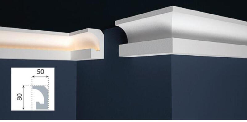 Ledes díszléc - Modern, stílusos megoldás minden helyiséghez A díszléc takarással kialakított rejtett világítás nagyon felkapott lett a mai otthonokba, amit Te magad is megcsinálhatsz! A polisztirol rejtett világításos díszléc olyan profil, amelybe az SMD LED szalag befektethető. A díszlecek a ledszalagot nem tartalmazzák!
